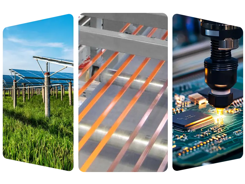 • ದ್ಯುತಿವಿದ್ಯುಜ್ಜನಕ ಕ್ಷೇತ್ರ: ದ್ಯುತಿವಿದ್ಯುಜ್ಜನಕ ವೆಲ್ಡಿಂಗ್ ರಿಬ್ಬನ್ಗಳು ಮತ್ತು ಬಸ್ಬಾರ್ಗಳ ಸಾಮೂಹಿಕ ಉತ್ಪಾದನೆಯು ಘಟಕಗಳು ವಿದ್ಯುಚ್ಛಕ್ತಿಯನ್ನು ಪರಿಣಾಮಕಾರಿಯಾಗಿ ನಡೆಸಲು ಸಹಾಯ ಮಾಡುತ್ತದೆ.